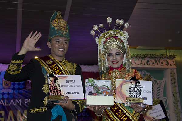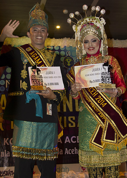 MAHASISWA Psikologi Unsyiah, Fathur Maulana (22) dan Dokter Muda RSUZA Zahratul Fajri (23) akhirnya berhasil dinobatkan sebagai Agam Inong (Duta Wisata) Banda Aceh 2014, Sabtu (22/3/2014) di Aula Balai Kota Banda Aceh.