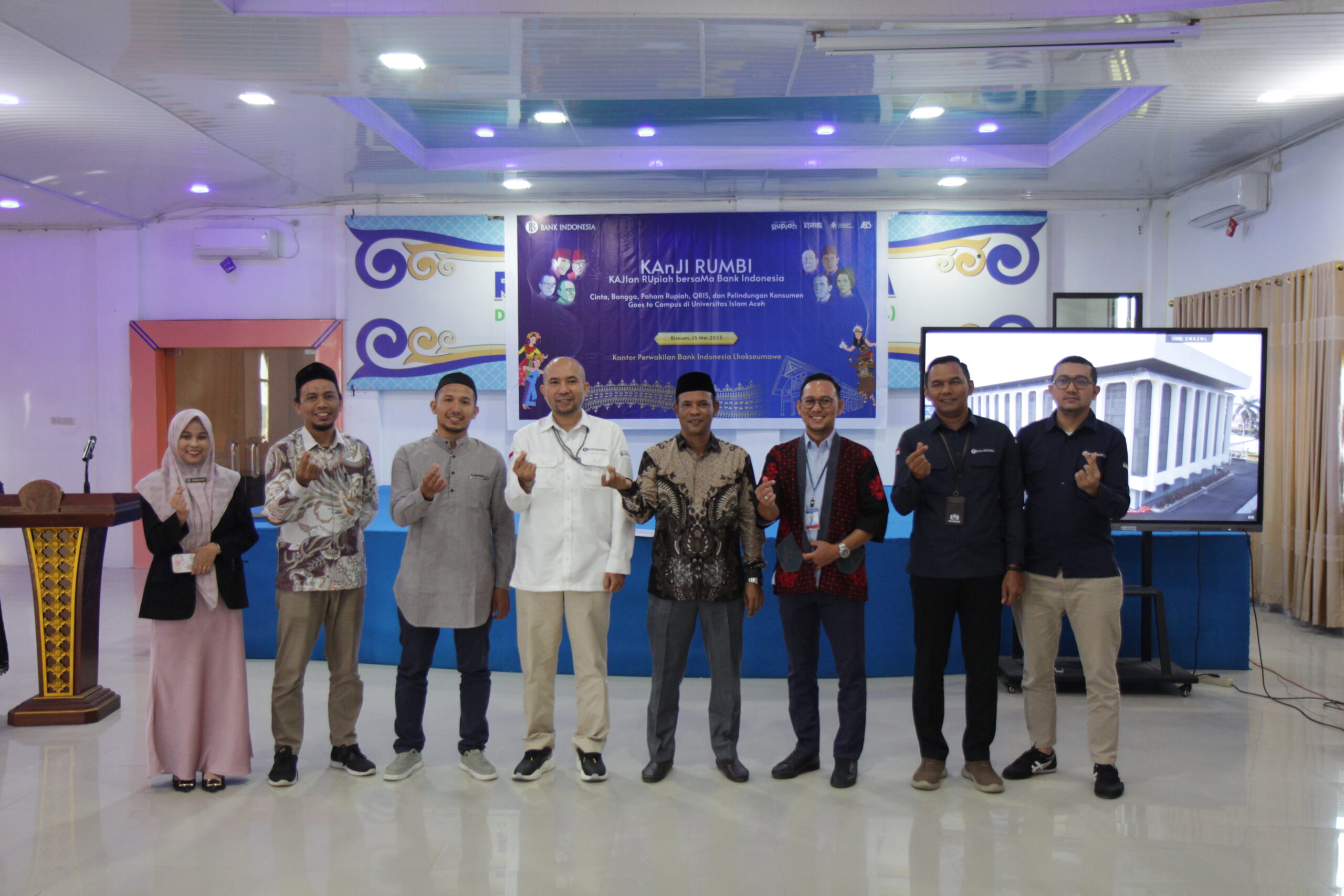 KANTOR Perwakilan (KPw) Bank Indonesia (BI) Lhokseumawe bekerja sama dengan Generasi Baru Indonesia (GenBI) Komisariat Universitas Islam Aceh (UIA) menggelar kegiatan KAJIan Rupiah bersaMa Bank Indonesia atau KAnJI RUMBI pada Kamis, 15 Mei 2025 di Aula Tgk Chik Abddurahman Kampus Paya Lipah.
