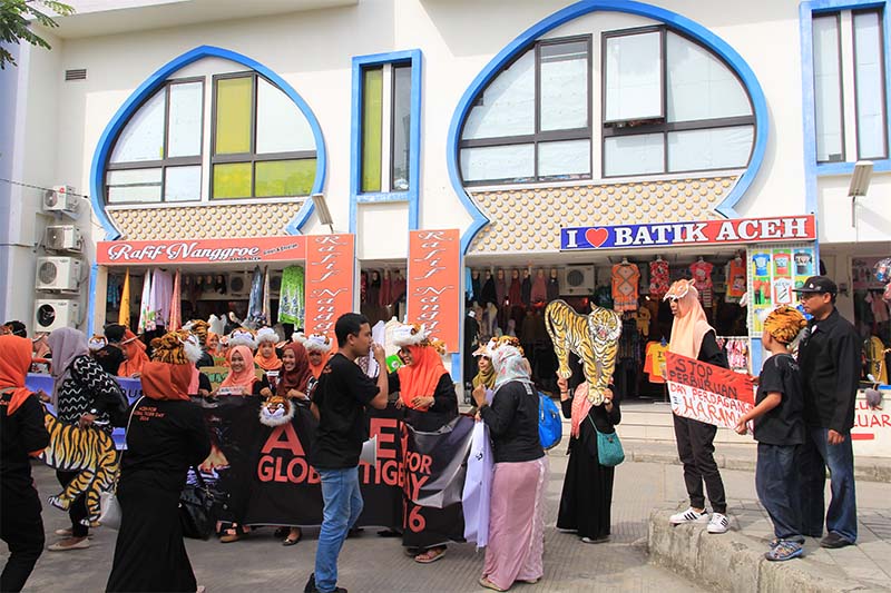 Peserta aksi Hari Harimau Sedunia akan melakukan flashmob di pelataran Pasar Aceh (Foto M Iqbal/SeputarAceh.com)