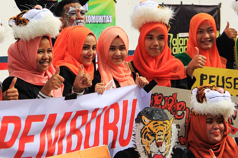 AKSI puluhan komunitas dan Lembaga Swadaya Masyarakat menyerukan penyelematan Harimau Sumatera (Panthera Tigris Sumatrae) dalam aksi Hari Harimau Sedunia (Global Tiger Day), Jum’at (29/7/2016) di pelataran Masjid Raya Baiturrahman, Banda Aceh.