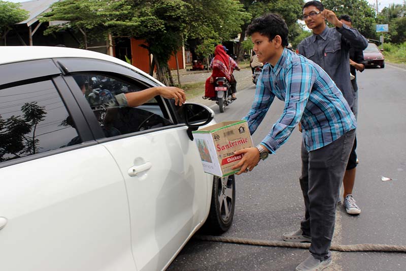 Aksi penggalangan dana tersebut digelar sejak dua hari, 13-14 Juni di jalan nasional Banda Aceh – Calang, tepatnya di depan barak Gampong Lampaya atau sebelum Masjid Lhoknga dari arah Banda Aceh.[]