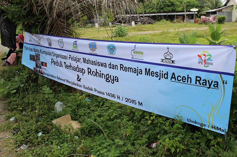 Spanduk yang bertuliskan aksi galang dana bersama dari pelajar, mahasiswa dan remaja mesjid se-Aceh Raya (IST)