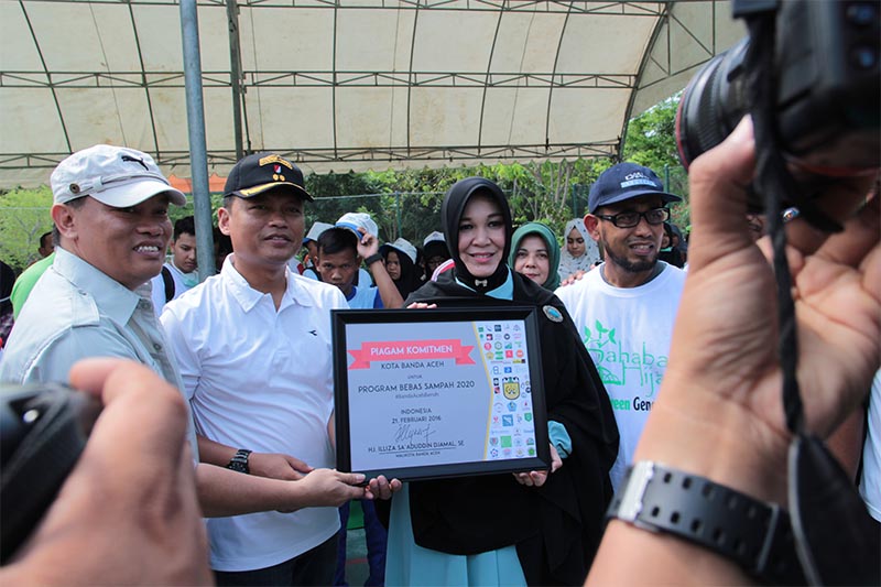 Bersamaan dengan aksi HPSN 2016, Wali Kota Banda Aceh Illiza Sa’aduddin Djamal memberikan apresiasi kepada ratusan peserta dari berbagai komunitas yang telah turut berkontribusi dalam menjaga lingkungan untuk mendukung Indonesia #BebasSampah2020.