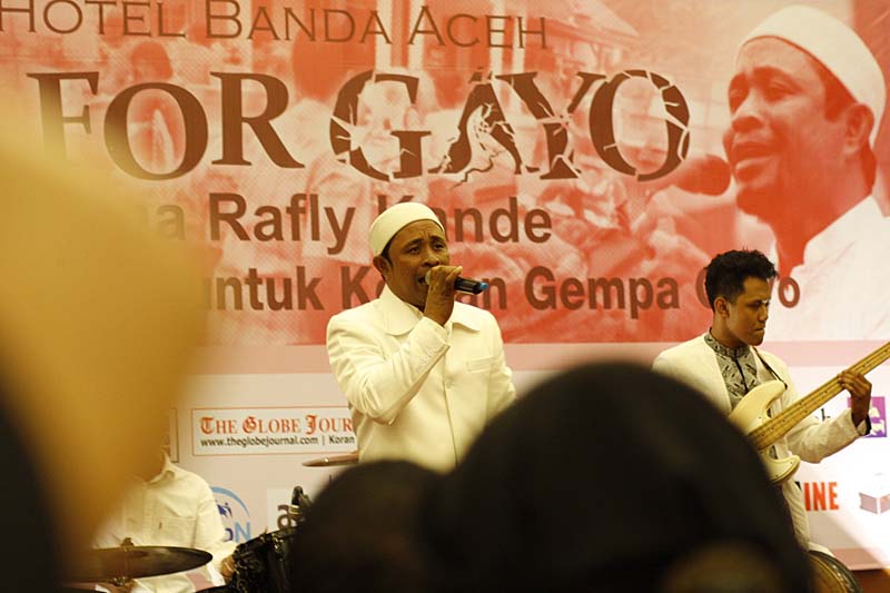 Lagu Bumoe Rafly pada malam konser Amal ‘Charity For Gayo’ di Hermes Palace Hotel Banda Aceh.