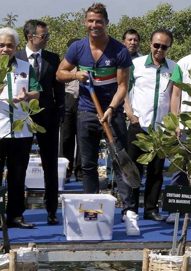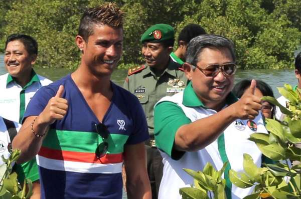 Inilah foto-foto kegiatan CR7 saat menyambangi ‘Pulau Dewata’ dalam acara yang bertajuk ‘Save Mangrove, Save Earth’ bersama Presiden Susilo Bambang Yudhoyono, Tomy Winata, dan Menteri Kehutanan Zulkifli Hasan.[]