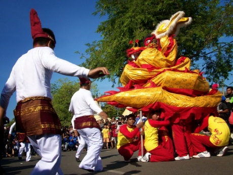 Diantara rangkaian kegiatan, kolaborasi kebudayaan dari tari Seudati dengan atraksi Barongsai juga terlihat di arena Car Free Day, Simpang Lima Banda Aceh.