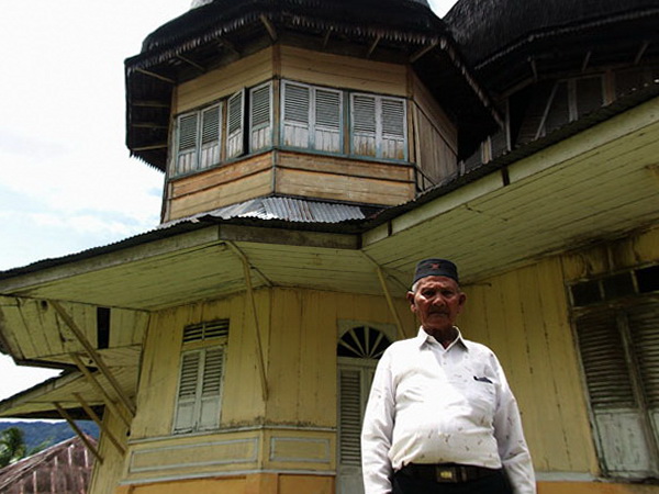 Tgk Peutua Puteh berdiri didepan masjid tua (M Iqbal/SeputarAceh.com)