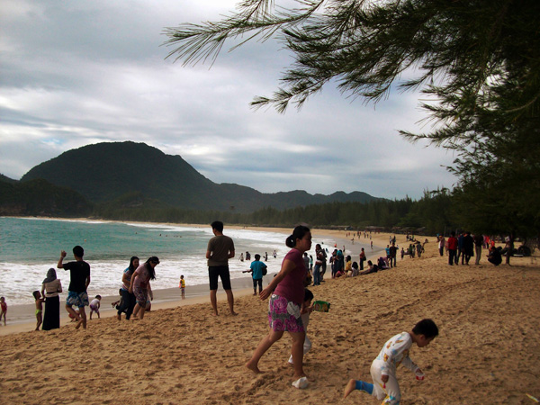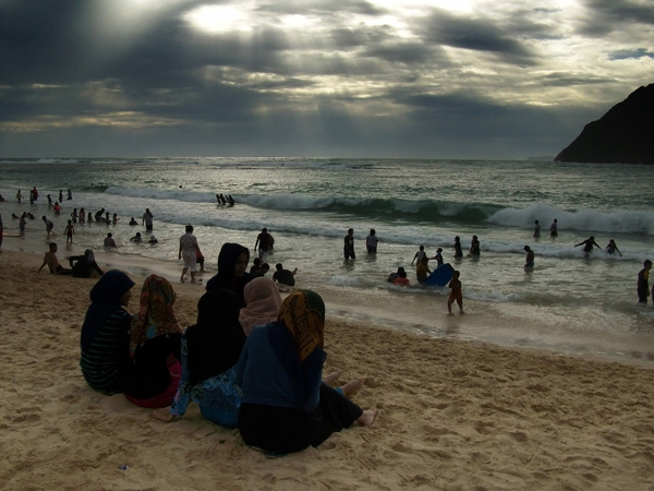 MENGISI waktu libur selama lebaran Idul Fitri 1434 H, warga Banda Aceh dan sekitarnya memilih tempat wisata pantai Lampu’uk Aceh Besar yang berada sekitar 15 kilometer dari kota Banda Aceh sebagai salah satu tempat untuk berekreasi bersama keluarga dan kerabat. Hujan disertai angin beberapa minggu ini melanda sebagian Aceh, membuat pengelola pantai Lampu’uk menaruh rambu kepada pengunjung agar mandi tidak melewati ombak dan batas pelampung. Foto direkam Minggu (11/8).