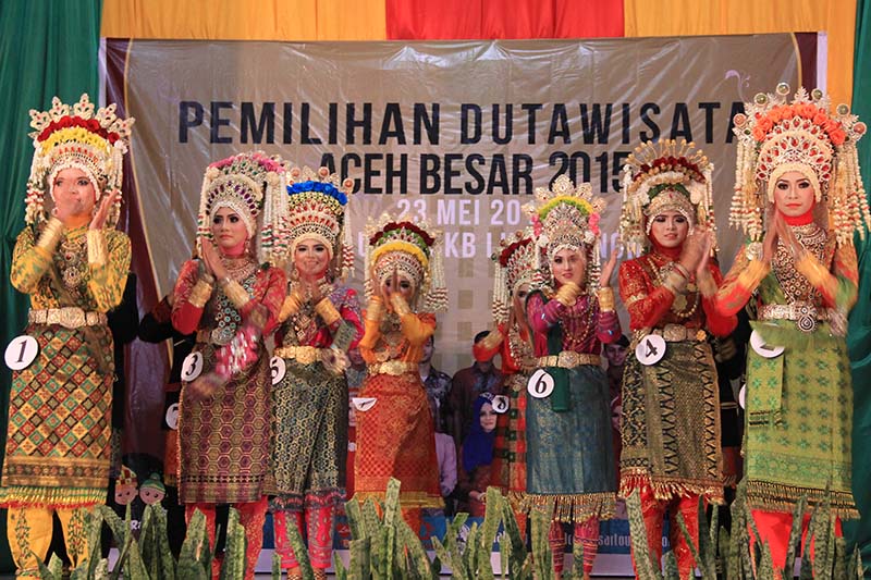 PENOBATAN Agam Inong (Duta Wisata) Aceh Besar 2015 berlangsung meriah, Sabtu (23/5/2015) malam di di Gedung UPTD SKB Desa Lubuk Sukon, Kecamatan Ingin Jaya, Aceh Besar.