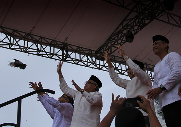 PEMERINTAH Aceh menggelar peringatan damai sembilan tahun MoU Helsinki yang dipusatkan Masjid Raya Baiturrahman, Banda Aceh (15/8/2014).