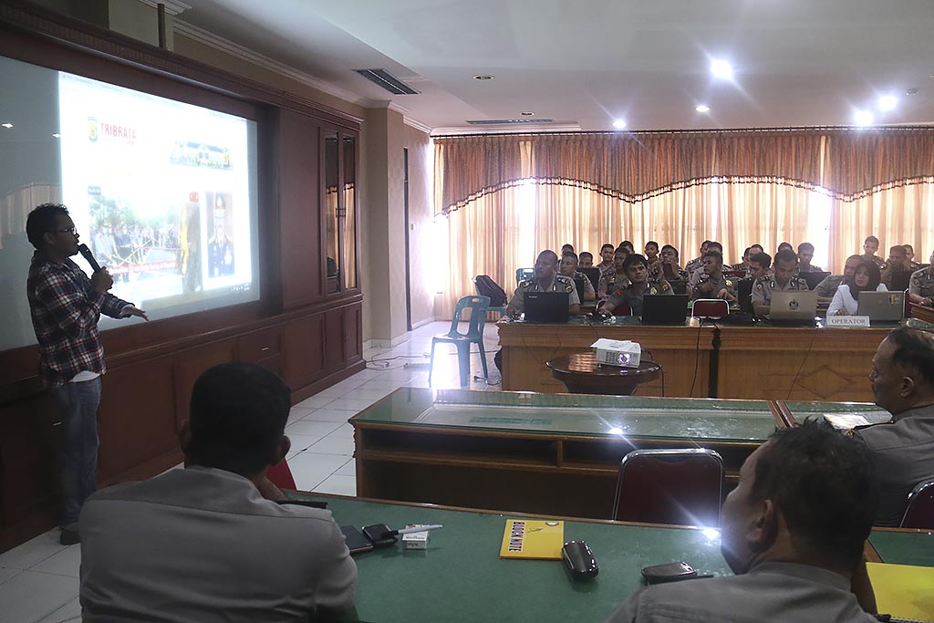 Sosialisasi jurnalistik dan pengelolaan website Tribratanewaceh.com di Aula Machdum Sakti, Polda Aceh, Senin dan Selasa (9-10/11/2015).