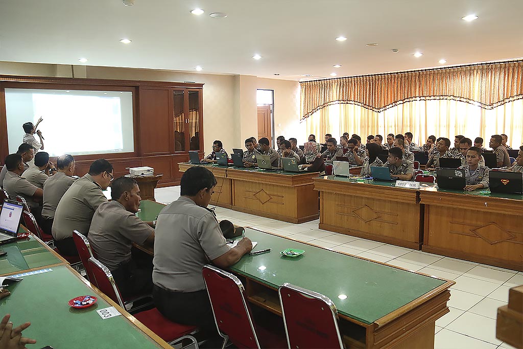 Suasana sosialisasi jurnalistik dan pengelolaan website tribratanewsaceh dan tribratanews Polres se Aceh di Aula Machdum Sakti, Polda Aceh, Senin dan Selasa (9-10/11/2015).