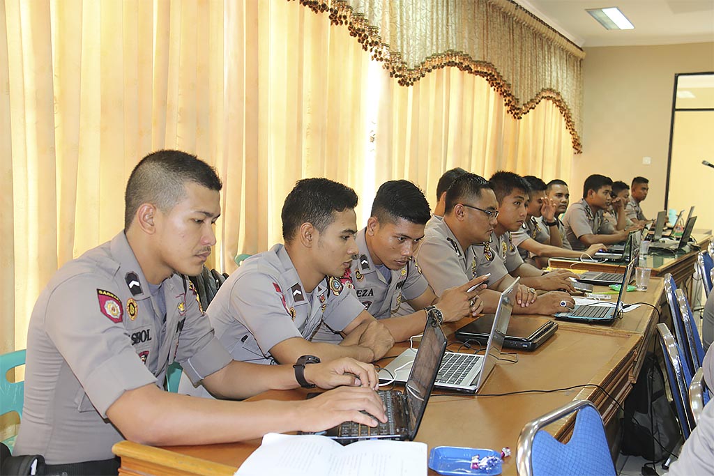 Polisi mengikuti pelatihan jurnalistik dan pengelolaan web site di Aula Machdum Sakti, Senin (10/11/2015) Foto : Bid Humas Polda Aceh.