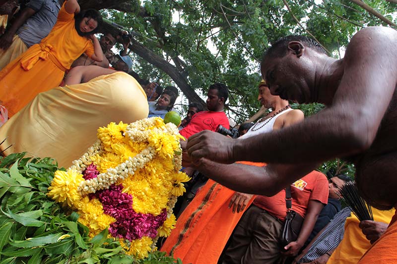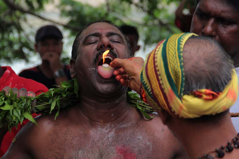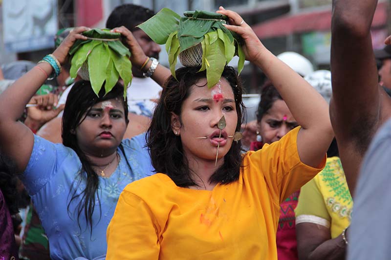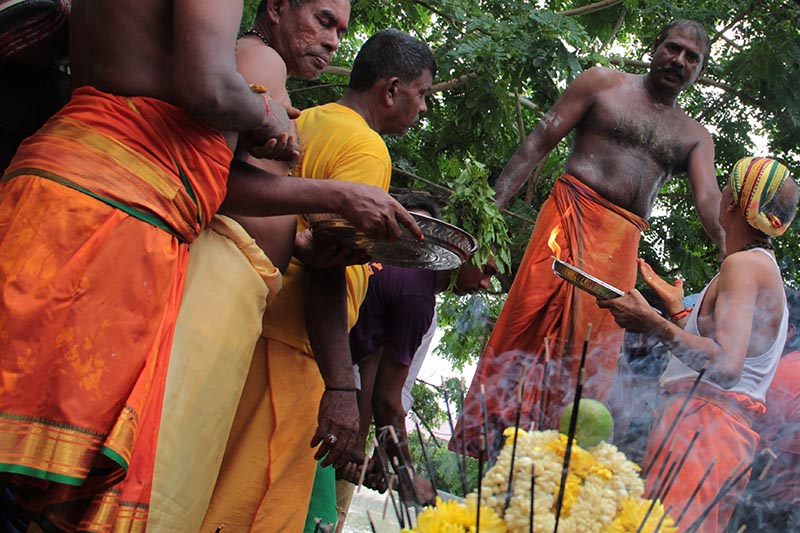 PULUHAN umat Hindu keturuan Tamil India menyambut hari Maha Puja Thaipusam dan ritual Pangguni Uthiram di Kuil Palani Andawer, Gampong Keudah, Kecamatan Kuta Raja, Banda Aceh, Minggu (17/4/2016).
