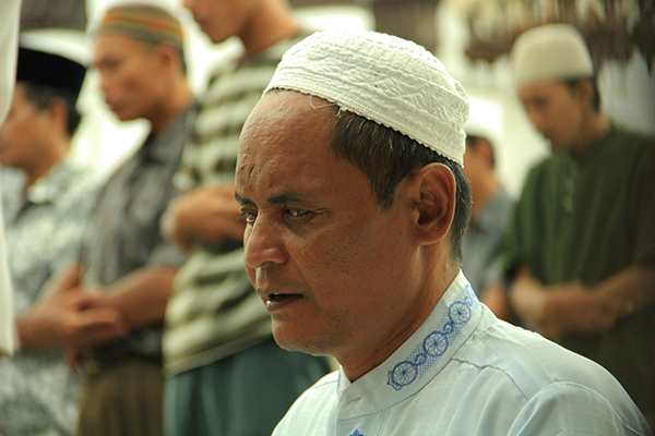Seorang jama’ah yang mengalami cacat mata melaksanakan shalat tarawih Ramadhan. (Foto M Iqbal/SeputarAceh.com)