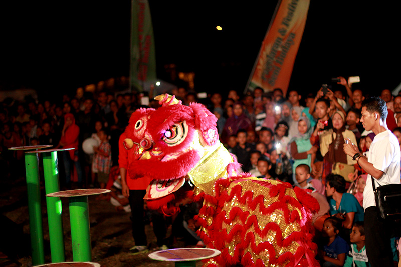 Atraksi barongsai juga meriahkan malam pembukaan Festival Sabang Fair 2016 (Foto SeputarAceh.com/Wanda Haris Purnama)