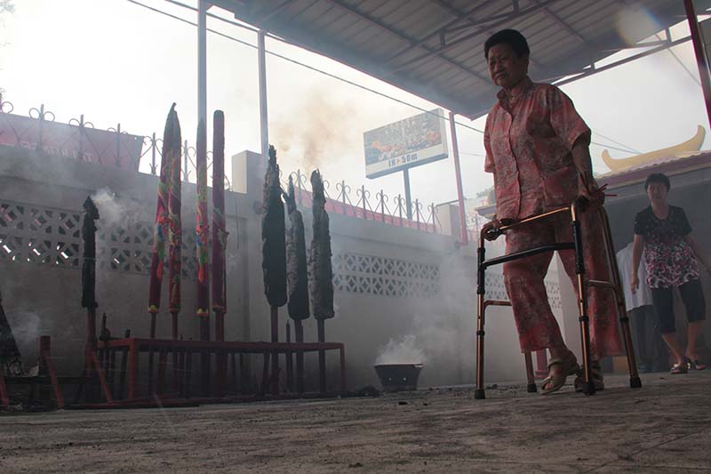 Manula etnis Tionghoa menggunakan alat bantu berjalan saat perayaan tahun baru Imlek 2567 di Vihara Dharma Bakti, Peunayong, Banda Aceh (Foto M Iqbal/SeputarAceh.com)