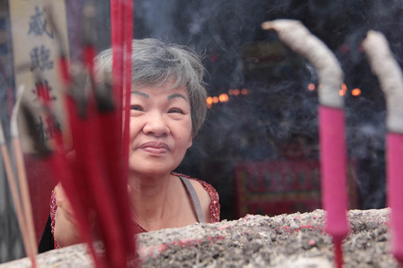 Warga etnis Tionghoa melakukan sembahyang menghadap altar ‘Se Mien Fo’ patung Buddha berwajah empat (Phra Phrom) di Vihara Dhrama Bakti, Banda Aceh (Foto M Iqbal/SeputarAceh.com)