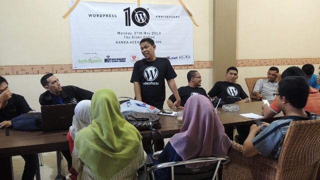 Acara kopi darat (kopdar) yang diprakarsai oleh penyedia layanan blog WordPress pusat di situs meetup.com tersebut, berhasil menarik minat blogger dan pengguna WP di Aceh. Tepatnya pada hari ini pula, WordPress yang telah berusia 10 tahun ini menggelar pertemuan serentak di 671 kota di dunia dan termasuk di Aceh.