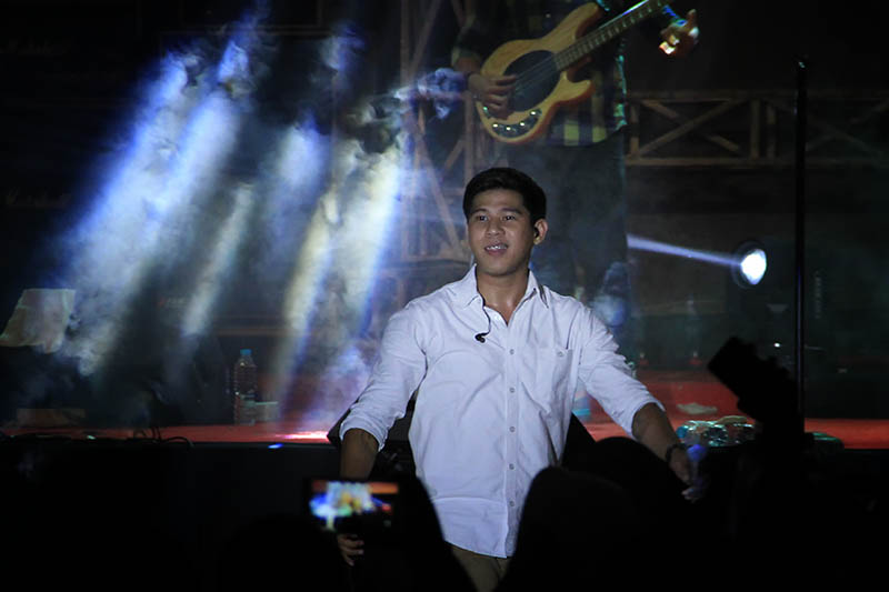Nino vokalis RAN menyapa para penggemarnya live konser The Annual Radio Unplugged 2016 di gedung AAC Dayan Dawood, Darussalam, Banda Aceh (Foto M Iqbal/SeputarAceh.com)