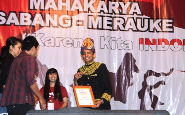 Piagam tersebut di terima langsung dalam penutupan Mahakrya Sabang-Merauke oleh Duta TPA 2013, yaitu Yevi Yusnanda (UII) dan Khairunnisa Sy (UGM). Kegiatan Mahakarya Sabang-Merauke dimeriahkan dengan penampilan tari Rapai geleng oleh komunitas Seniman Perantauan Atjeh.